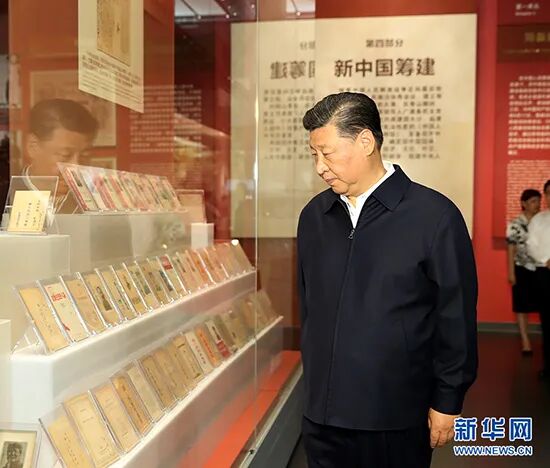2019年9月12日,中共中央总书记、国家主席、中央军委主席习近平视察中共中央北京香山革命纪念地。这是习近平在香山革命纪念馆参观《为新中国奠基》主题展览。新华社记者 黄敬文/摄