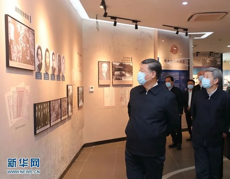 2020年4月20日至23日,中共中央总书记、国家主席、中央军委主席习近平在陕西考察。这是4月22日,习近平在西安交通大学交大西迁博物馆参观。新华社记者 鞠鹏/摄
